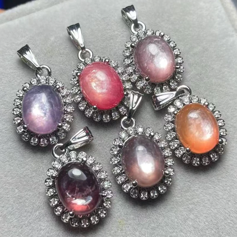 4 Stück AKAC Stein Größe ca. 8*10mm natürlicher Lepidolith Anhänger Weißkupfer Anhänger Charms zufällig verschickt