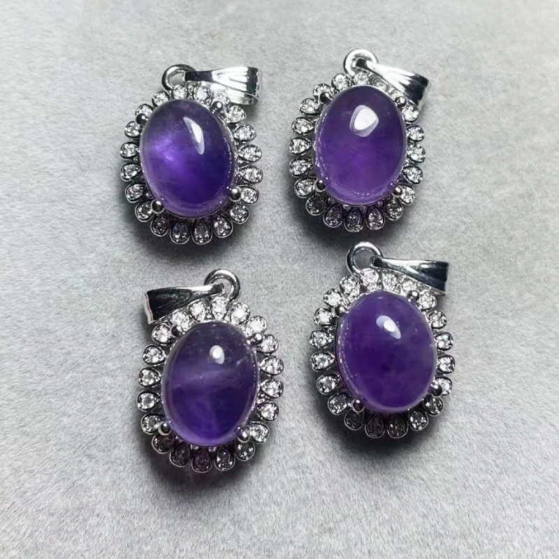 Lot de 5 pendentifs en améthyste naturelle (pierre AKAC, environ 8 x 10 mm) et cuivre blanc, envoi aléatoire.