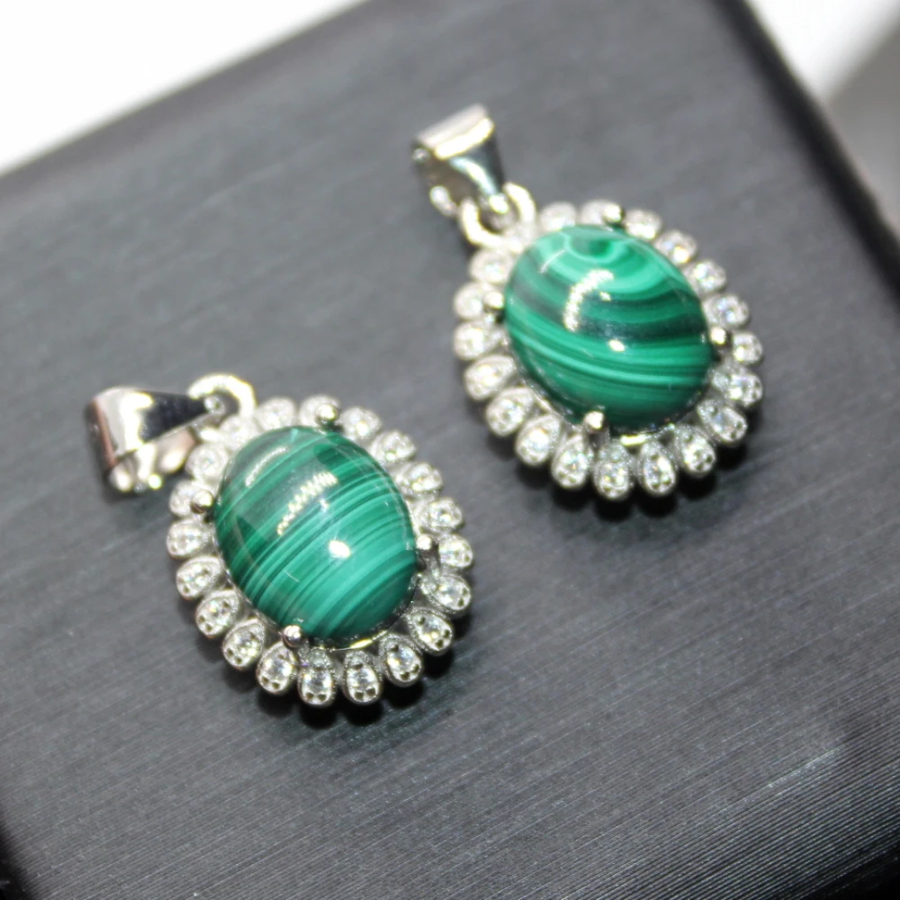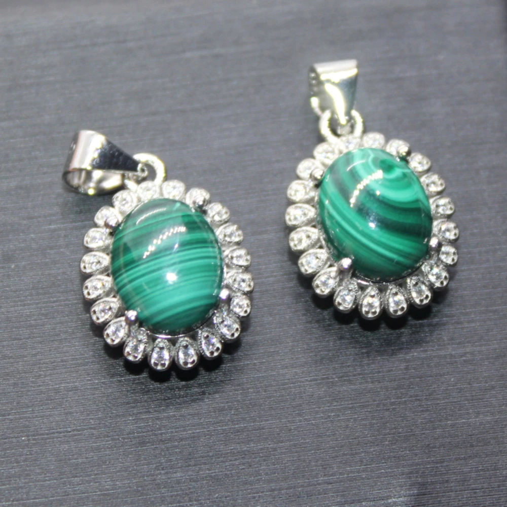 Lot de 5 pendentifs en malachite naturelle (pierre AKAC, environ 8 x 10 mm) montés sur cuivre blanc (envoi aléatoire).