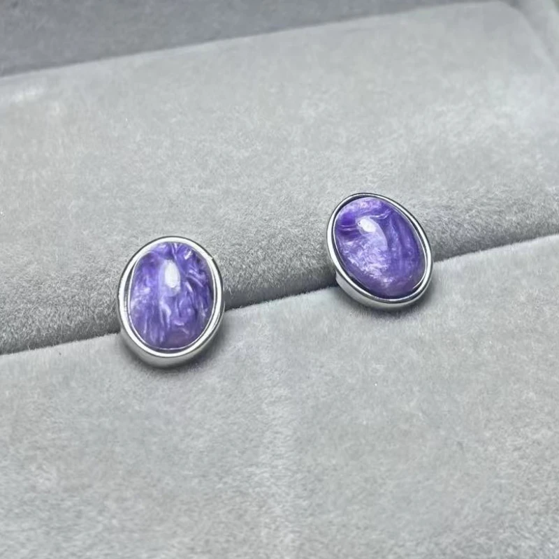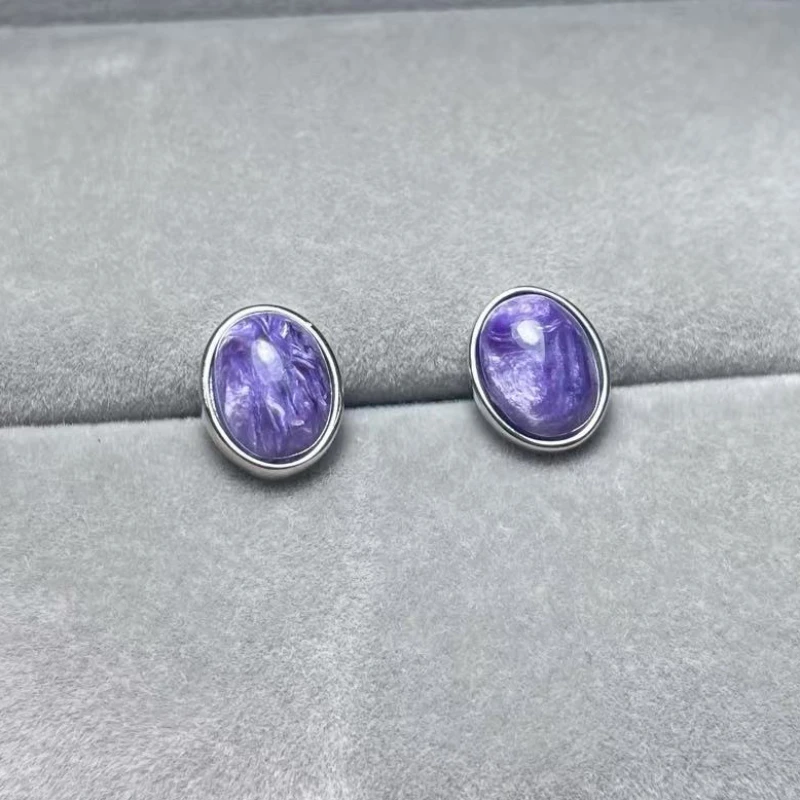 925 스털링 실버 천연 차로아이트 약 7*9mm 여성용 스터드 귀걸이