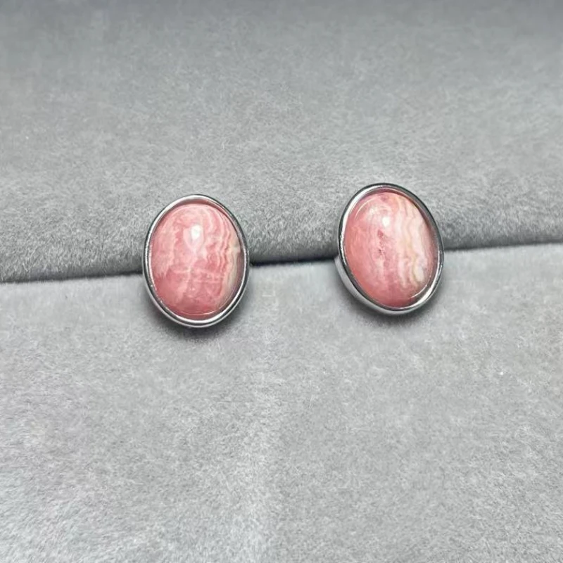 925 스털링 실버 천연 로도크로사이트 약 7*9mm 여성용 스터드 귀걸이