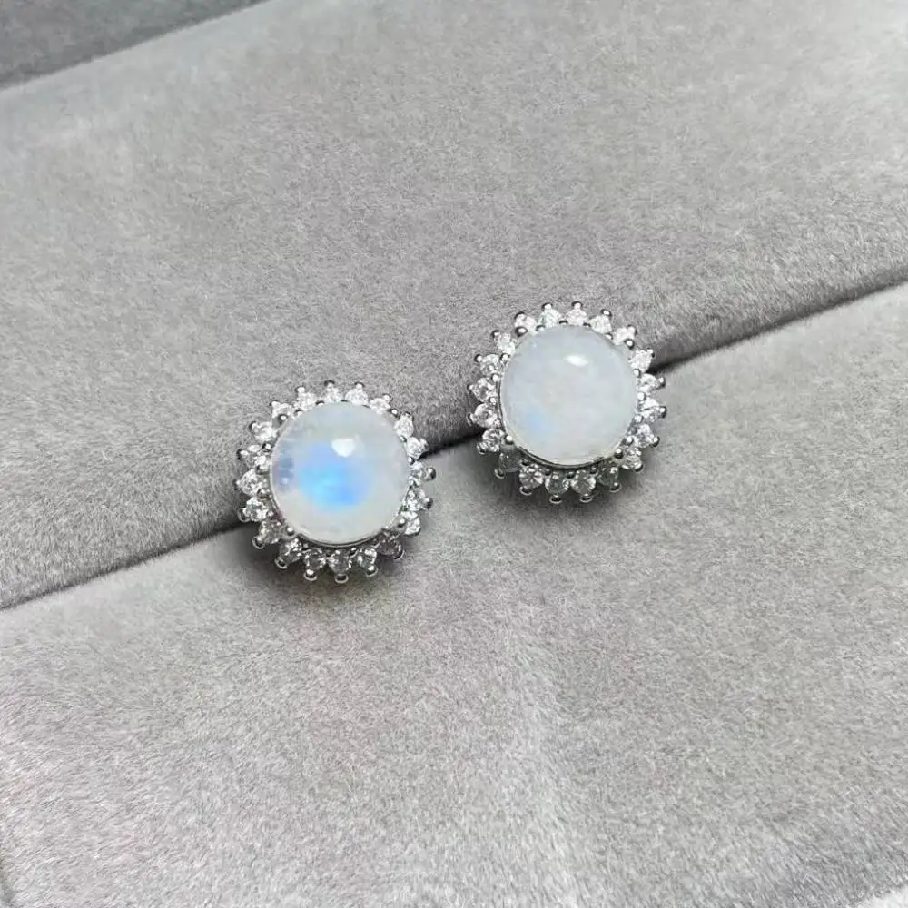 Approx7-8mm 925 sterling silver Natural India moonstone stud earrings for women earrings